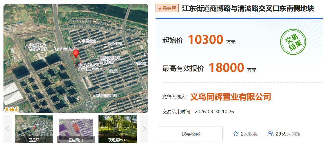 溢价74.76%,1.8亿,义乌一商住地块成交