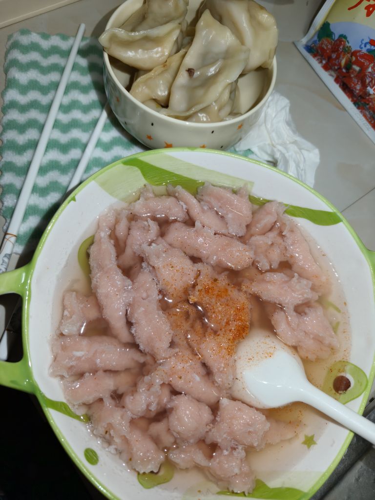 第一次做瘦肉丸,少点葱花香菜
